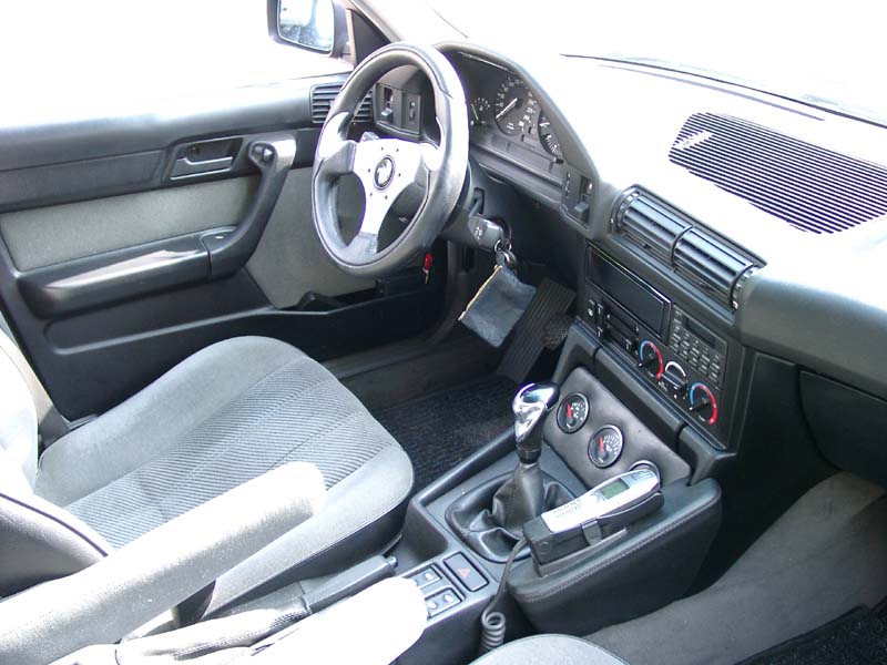 - Ausstattung jetzt: elektr. Schiebedach, elektr. Fensterheber vorne, großer Bordcomputer, AP-Fahrwerk 60/40mm, 8,5jx17 OZ Cerris Alufelgen mit 225/45 17 Reifen, schwarze Scheinwerfer, schwarze Rückleuchten, schwarze Niere, Scheinwerferblenden, K&N-Luftfilter, US-Standlicht im Blinker, US-Seitenbegrenzungslichter, Nebelscheinwerfer, Raid 32er Sportlenkrad, Schaltknauf, Zusatzinstrumente (Öltemperatur, Oildruckanzeige, Ampermeter) in Mittelkonsole eingearbeitet, Armlehnen vorne, Leseleuchten vorne/hinten, Make-up-Spiegel mit Beleuchtung, Alpina-Frontschürze, M-Schürze hinten, Endrohre, Spurverbreiterung vorne/hinten, Facelift Außenspiegel, graue Blinker, Freisprecheinrichtung, M5-Kennzeichenhalter, Heckrollo.... mehr fällt mir gerade nicht ein....